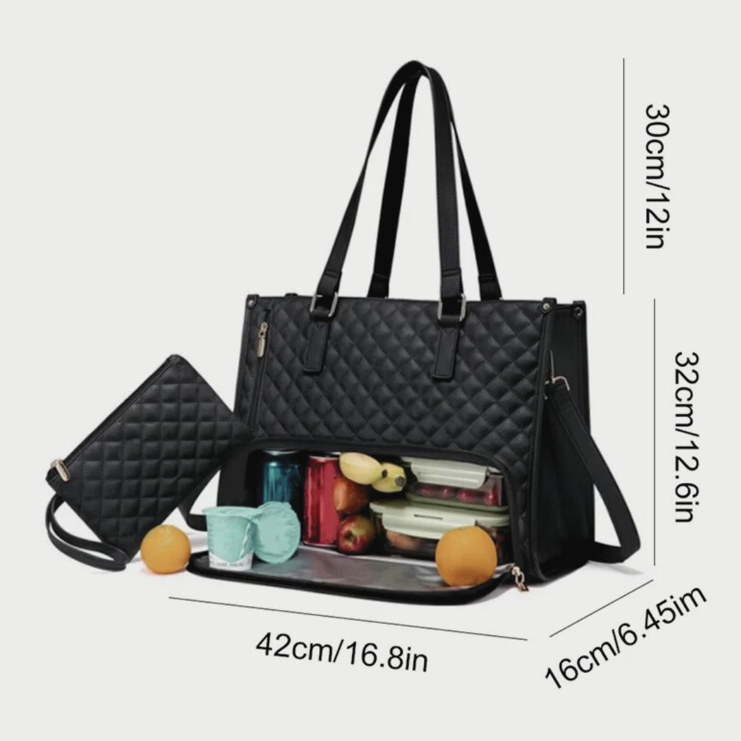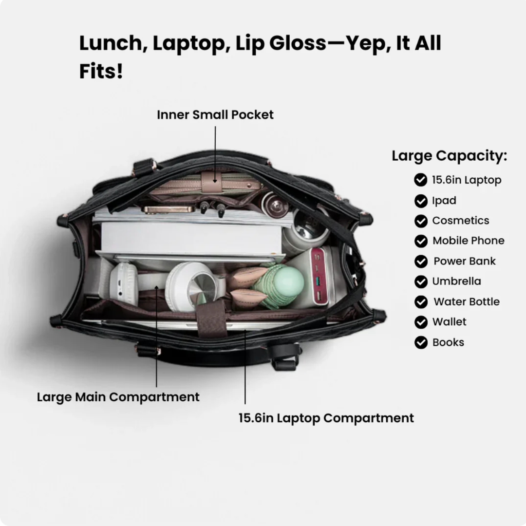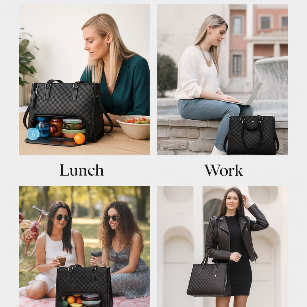 Solena™ holds your laptop, lunch & essentials in one elegant tote. Stay stylish and organized all day.