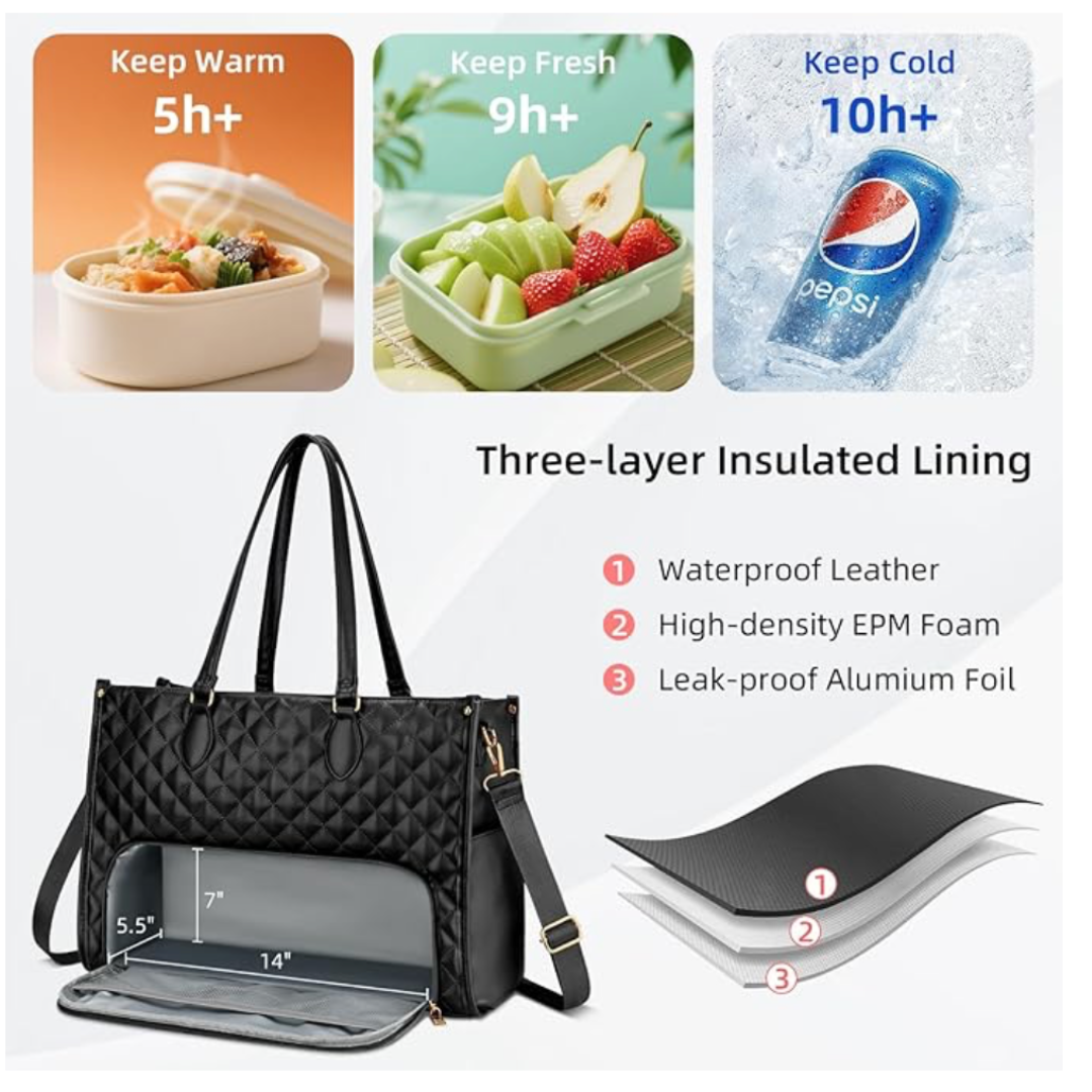 Insulated lunch compartment: 14.5 x 6 x 5.5 inches – keeps meals fresh on the go.